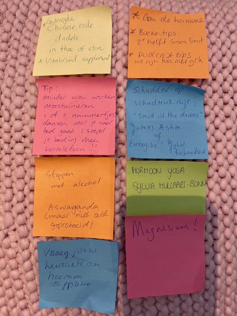 We hopen dat deze bijeenkomst je een stapje verder heeft gebracht in het nemen van de eigen regie rondom de overgang, van jezelf of van iemand in jouw omgeving. Het is een boeiende fase in het leven van een vrouw en we kunnen nog vele uren hierover doorpraten. En doe dat ook vooral! Met de mensen in je omgeving, privé en in het werk.